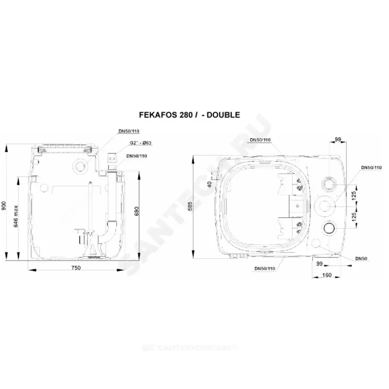 | Соединения | Ввод DN 50/110, Вентиляция DN 50, Вывод G2” |