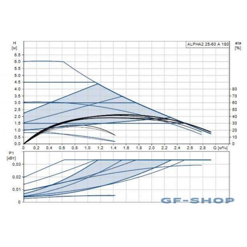 Циркуляционные насосы Grundfos ALPHA2 25-60 A 180 используются для циркуляции воды или гликольсодержащих жидкостей в регулируемых системах отопления и в системах отопления с переменным расходом. Функция AUTOadapt ALPHA2 регулирует перепад давления в соответствии с текущими потребностями системы, нет необходимости регулировать насос самостоятельно – он все сделает за вас. Также есть 3 фиксированные скорости, 3 режима постоянного давления, 3 режима пропорционально давления. Циркуляционный насос ALPHA2 благодаря запатентованным технологиям компании GRUNDFOS является прекрасным выбором для систем отопления и ГВС, ориентированным на максимальное энергосбережение. Используя ALPHA2 можно не беспокоиться о сложных настройках насоса. Достаточно установить насос и оставить заводские настройки с применением режима AUTOADAPT. ALPHA2 самостоятельно проанализирует систему отопления, найдет оптимальную рабочую точку и по мере изменения потребностей системы отопления продолжит оптимизировать свою работу. Назначение Насосы серии ALPHA предназначены для обеспечения циркуляции воды в отопительных системах, местных системах горячего водоснабжения (исполнение “N”), а также в системах кондиционирования воздуха и охлаждения. Конструкция насосов ALPHA позволяет перекачивать жидкости в температурном диапазоне от + 2 °C до +110 °C. В ассортименте есть насосы серии ALPHA в исполнении с воздухоотделителем (исполнение “A”). Энергоэффективность Grundfos поддерживает деятельность по развитию энергоэффективного оборудования, которое сокращает затраты на электроэнергию и сохраняет экологическое равновесие. Европейские нормы энергоэффективности EuP требуют, чтобы уровень энергоэффективности EEI для циркуляционных насосов имел значение, не выше 0,23. Значение EEI насоса ALPHA2 не превышает 0,15, что на порядок опережает текущие нормы EuP.