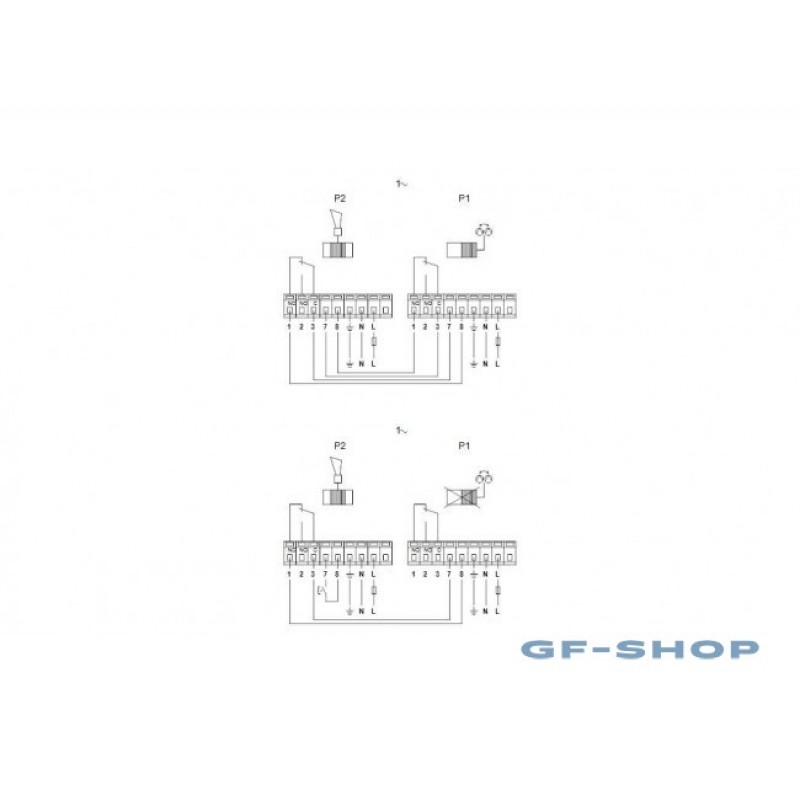Сдвоенные насосы могут поставляются с релейным модулем в клеммной коробке. Насосы могут включаться непосредственно в электросеть. Релейный модуль позволяет насосу работать в трех режимах.
