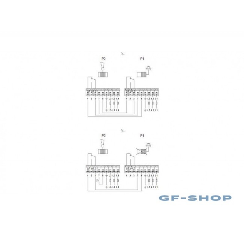 Сдвоенные насосы могут поставляются с релейным модулем в клеммной коробке. Насосы могут включаться непосредственно в электросеть. Релейный модуль позволяет насосу работать в трех режимах.