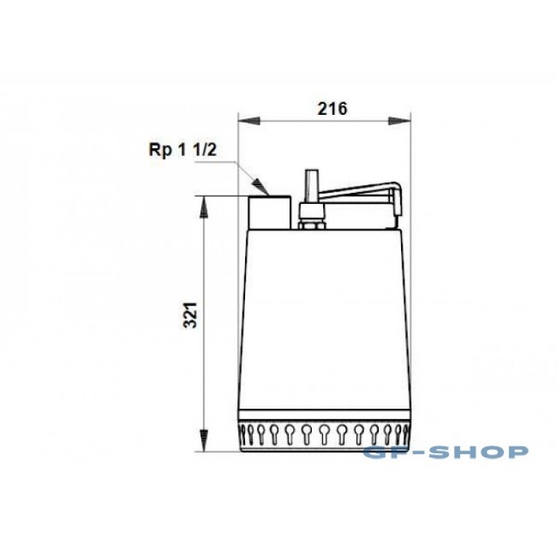 Насосы с буквой "А" в условном обозначении модели оснащаются поплавковым выключателем. Выходное отверстие расположено в боковой части насоса и имеет резьбу R 2.