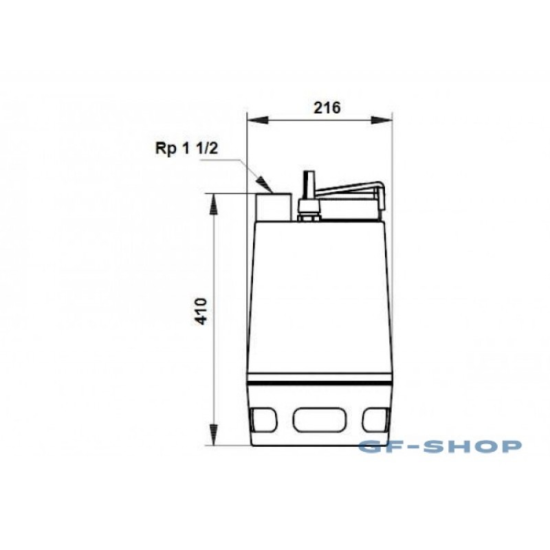 Насосы с буквой "А" в условном обозначении модели оснащаются поплавковым выключателем. Выходное отверстие расположено в боковой части насоса и имеет резьбу R 2.