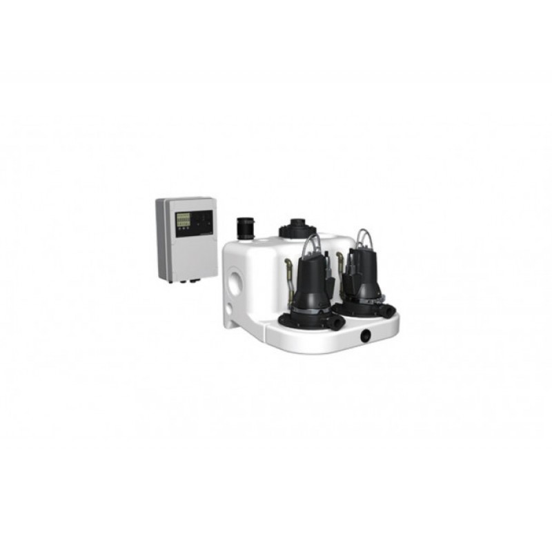 Канализационная насосная установка Grundfos MDG.09.3.2 Multilift поставляется полностью готовой к установке, состоит из герметичного резервуара с двумя насосами с режущим механизмом и погружными электродвигателями установленными на резервуар. Проводногно контроллера вкл.Датчик уровня. (Обратные клапаны и выпускные трубы поставляются в качестве принадлежностей). Полностью герметичный резервуар обладает всеми необходимыми патрубками для подключения впускной трубы, сливной трубы, вентиляционные трубы и ручного мембранного насоса (принадлежность). Сборный резервуар содержит 7 входных патрубков по периметру. Выходной патрубок DN100 позволяет подключить трубопроводы от 180 и до 315 мм без переходников. DN100 и DN50 входы на каждой стороне. DN150, DN50 вход на верхней части резервуара.Multilift на подвержен коррозии, а также герметичный и осадок на дне минимальный за счет специальной формы дна бака. Насос с вихревым рабочим колесом и погружными электродвигателями и безопасной маслянной камерой для заливки масла между двумя уплотнениями вала. Напорный патрубок с внутренней резьбой 1 1/4".LC221 контроллер с микропроцессором оснащен дисплеем для полной возможности мониторинга. Насос и датчик подключен к контроллеру с 4 м или 10 м кабелем и трубой. Кабель питания 1,5 м с вилкой (с фазоинвертором для 3-х фазный двигатель). Бесконтактные, пьезо-резистивный датчик давления подключаемый внутри шкафа, контролируется контроллером, с точностью до миллиметра и отображается на дисплее. Контроллер для тепловой защиты электродвигателя и контроля работы насоса. Тепловая защита электродвигателя состоит из термического переключателя в обмотке.
