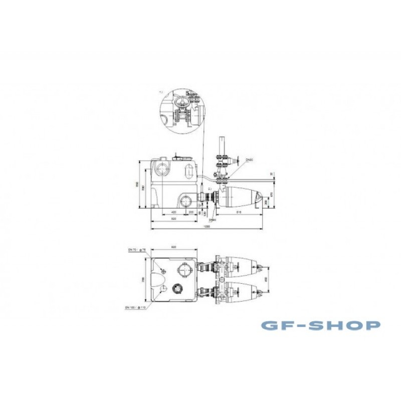Канализационная насосная установка Grundfos MDV.80.80.75.2.51D/450.SE - компактная насосная станция для сточных вод, состоит из одного или двух баков объемом 450 л, двух горизонтальных погружныех насосов серии SE для сточных вод, вкл.контроллер, аналоговый датчик уровня и возможность подключения принадлежностей. Бак на 450 л изготовлен из герметичной, коррозионно стойкого полиэтилена и не пропускает газы и запахи. Он снабжен