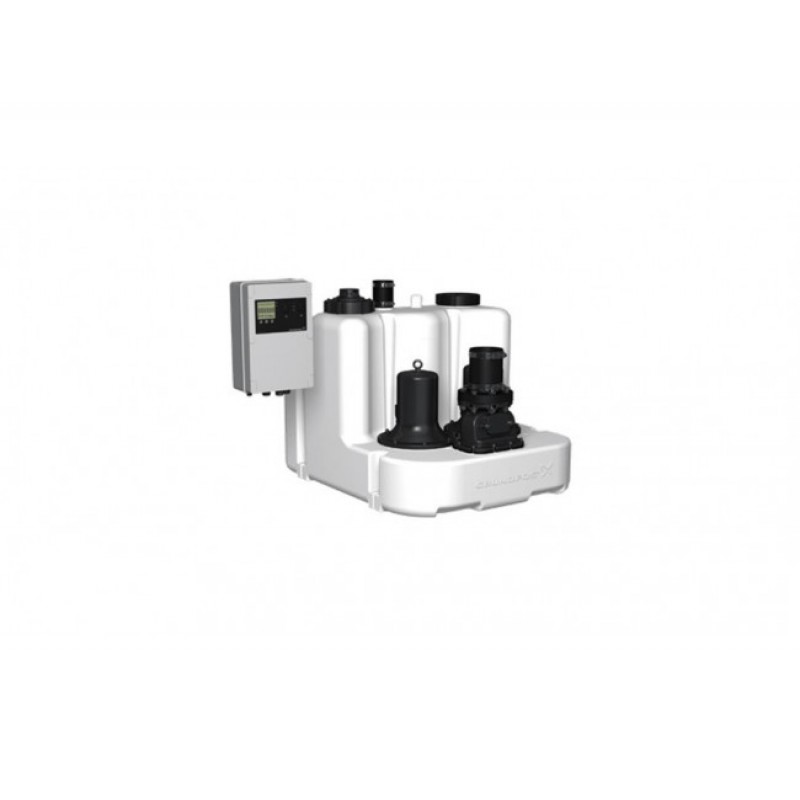 Канализационная насосная установка Grundfos MLD.15.3.4 - поставляется полностью готовой к монтажу. Multilift состоит из резервуара с двумя насосами с погружными электродвигателями, обратного клапана с интегрированным Y-патрубком, выходного адаптера с гибким DN100 подключением, установленным на резервуаре и контроллера вкл.датчик уровня. Полностью герметичный резервуар обладает всеми необходимыми патрубками для подключения впускной трубы, сливной трубы, вентиляционные трубы и ручного мембранного насоса (принадлежность). Резервуар имеет 2 входных патрубка. Основной патрубок DN150 на выступе резервуара и один DN50 на верхней части.Multilift на подвержен коррозии, а также герметичен и осадок на дне минимальный за счет специальной формы дна резервуара.Насос с вихревым рабочим колесом и погружными электродвигателями и безопасной маслянной камерой для заливки масла между двумя уплотнениями вала. Направление вращения указанно со стороны вала под рым-болтом. LC221 контроллер с микропроцессором оснащен дисплеем для полной возможности мониторинга. Насос и датчик подключен к контроллеру с 4 м или 10 м кабелем и трубой. Кабель питания 1,5 м с вилкой (с фазоинвертором для 3-х фазный двигатель). Бесконтактные, пьезо-резистивный датчик давления подключаемый внутри шкафа, контролируется контроллером, с точностью до миллиметра и отображается на дисплее. Контроллер для тепловой защиты электродвигателя и контроля работы насоса. Тепловая защита электродвигателя состоит из термического переключателя в обмотке.