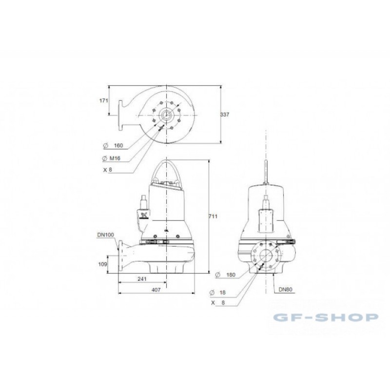 Несамовсасывающий одноступенчатый центробежный насос, предназначенный для перекачивания сточных вод, технологических вод и неочищенных сточных вод, не пропущенных через решетку. Насос предназначен для периодической и непрерывной эксплуатации в погруженном положении. Рабочее колесо S-tube® обеспечивает свободный сферический проход твердых частиц до 50 мм и подходит для сточных вод с содержанием сухих веществ до 3%. Уникальная система монтажа с помощью хомута из нержавеющей стали позволяет быстро и легко выполнять демонтаж насоса с узла электродвигателя для технического обслуживания и осмотра. Не требуются никакие специальные инструменты. Соединение трубопровода обеспечивается с использованием фланца DIN .