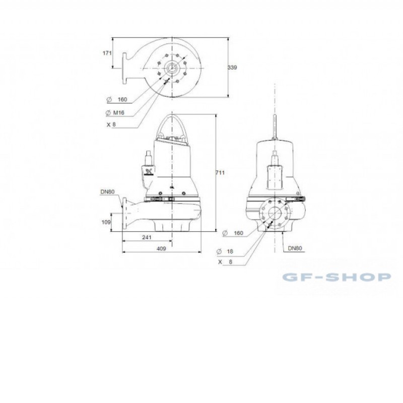 Несамовсасывающий одноступенчатый центробежный насос, предназначенный для перекачивания сточных вод, технологических вод и неочищенных сточных вод, не пропущенных через решетку. Насос предназначен для периодической и непрерывной эксплуатации в погруженном положении. Эффективное рабочее колесо SuperVortex обеспечивает проход длинных волокон и твердых частиц до 65 мм и подходит для сточных вод с содержанием сухих веществ до 5%. Уникальная система монтажа с помощью хомута из нержавеющей стали позволяет быстро и легко выполнять демонтаж насоса с узла электродвигателя для технического обслуживания и осмотра. Не требуются никакие специальные инструменты. Соединение трубопровода обеспечивается с использованием фланца DIN . Насос имеет взрывобезопасное исполнение.