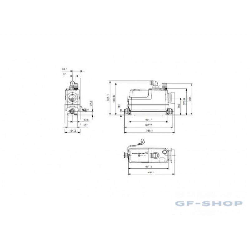 Канализационная насосная установка Grundfos SOLOLIFT2 CWC-3 это малогабаритная, полностью укомплектованная и готовая к монтажу насосная установка, представляет собой герметично закрытый пластиковый резервуар в котором расположены - насос с двигателем “сухого исполнения” с обратным клапаном в напорном патрубке, профессиональный режущий механизм и мощный двигатель способные справиться даже с предметами личной гигиены (WC-1, WC-3, CWC-3), реле уровня, вентиляционный клапан с угольным фильтром улучшенного качества (не требуются никакие дополнительные фильтры), электрический кабель длиной 1.2 м со штекером Shuko. Насос автоматически включается при заполнении резервуара (уровень включения) и автоматически выключается при его опорожнении (уровня выключения).