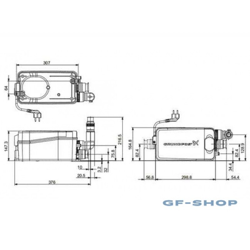 Канализационная установка Grundfos Sololift2 D-2 - небольшая, компактная автоматическая насосная установка, подходящая для перекачивания сточных вод от помещений в частных домах, от которых хозяйственно-бытовые сточные воды (без фекалий) нельзя направить в канализацию самотеком. Канализационная насосная установка Grundfos SOLOLIFT2 D-2 это малогабаритная, полностью укомплектованная и готовая к монтажу насосная установка представляет собой герметично закрытый пластиковый резервуар в котором расположены - насос с двигателем “сухого исполнения” с обратным клапаном в напорном патрубке, реле уровня, вентиляционный клапан с угольным фильтром улучшенного качества (не требуются никакие дополнительные фильтры), электрический кабель длиной 1.2 м со штекером Shuko. Насос автоматически включается при заполнении резервуара (уровень включения) и автоматически выключается при его опорожнении (уровня выключения).