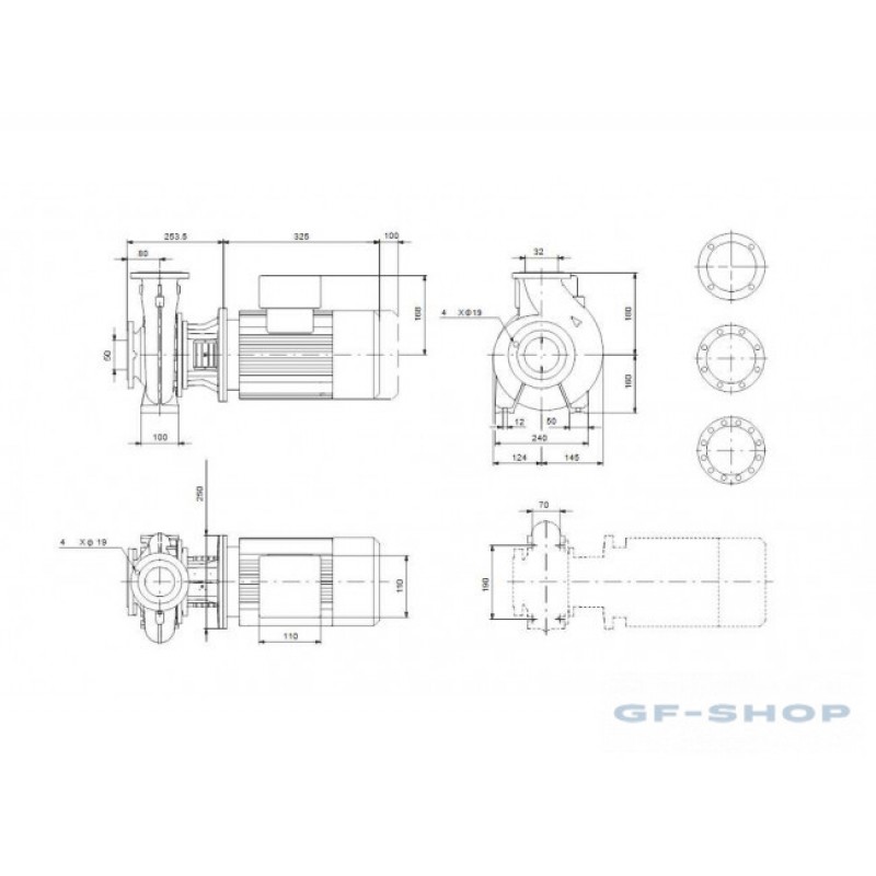 Несамовсасывающий, одноступенчатый, центробежный, насос со спиральной направляющей камерой разработан в соответствии с ISO 5199, при этом его размер и номинальная мощность соответствуют EN 733 (10 бар). Фланцы - PN 10 с размерами в соответствии с EN 1092-2. Насос имеет осевой всасывающий патрубок, радиальный напорный патрубок, горизонтальный вал и конструкцию со съёмной задней частью, обеспечивающей возможность демонтажа электродвигателя, фонаря, крышки и рабочего колеса без демонтажа корпуса насоса или трубопроводов. Несбалансированное резиновое сильфонное уплотнение в соответствии с DIN EN 12756. Насос напрямую соединён с асинхронным электродвигателем с воздушным охлаждением.