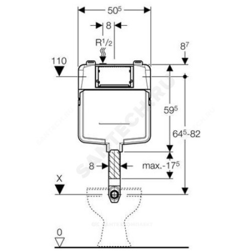 | Комплект поставки | Подвод воды R 1/2", совместимый с MF, со встроенным угловым запорным вентилем и маховичком, Защитная крышка для окна технического обслуживания, Колено смыва с изолирующими сегментами, Удлинитель колена смыва ? 45 мм, Защитная заглушка, 2 металлических крепежных планки с отверстиями, Крепеж |