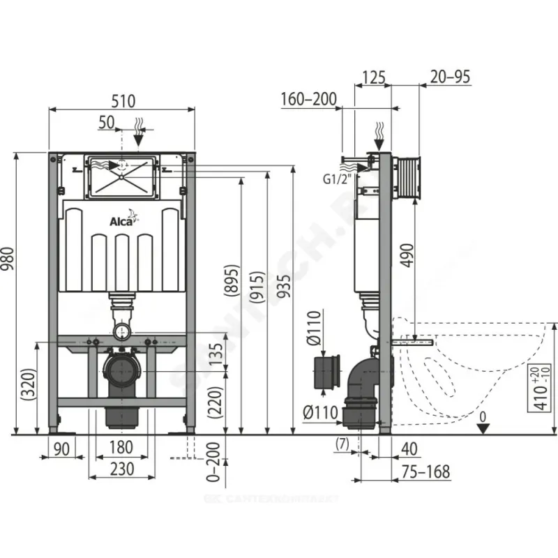 | Глубина установки инсталляции | 125 мм |