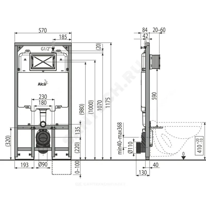 | Расстояние между креплениями сантехнического прибора | 180/230 мм |