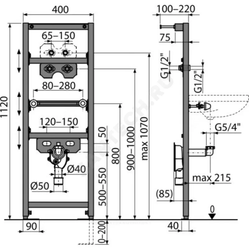 | Глубина установки инсталляции | 100-220 мм |