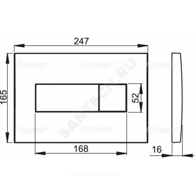 | Комплект поставки | КнопкаМонтажная рама для установки кнопкиРезьбовое крепление монтажной рамы кнопки 2 шт.Винт промывочного механизма 2 шт.Шаблон для установки кнопок управления |