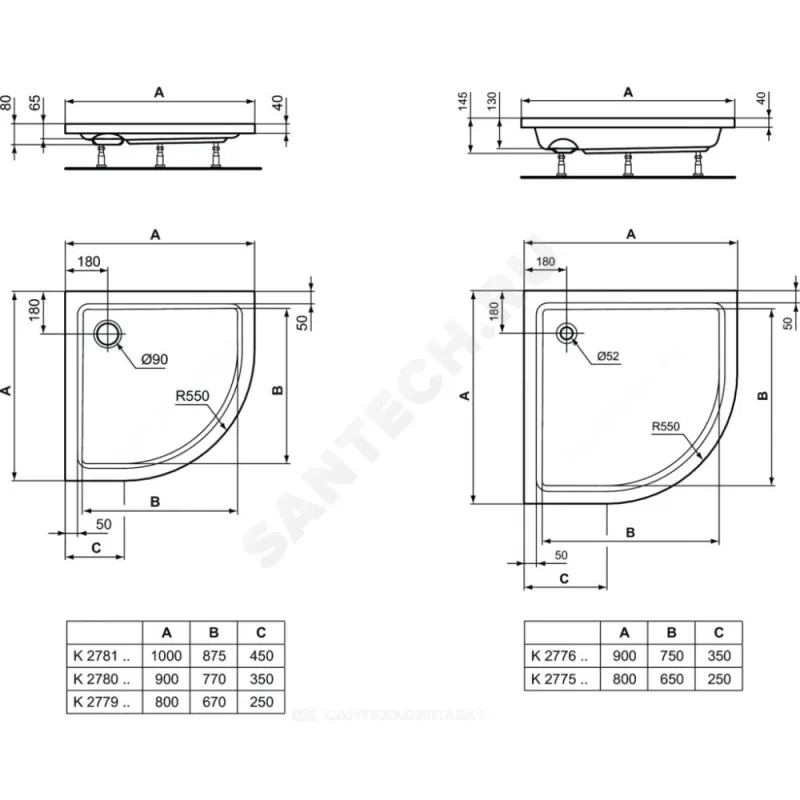 | Комплект поставки | HOTLINE Акриловый сегментный душевой поддон.Слив и ножки заказываются дополнительно |