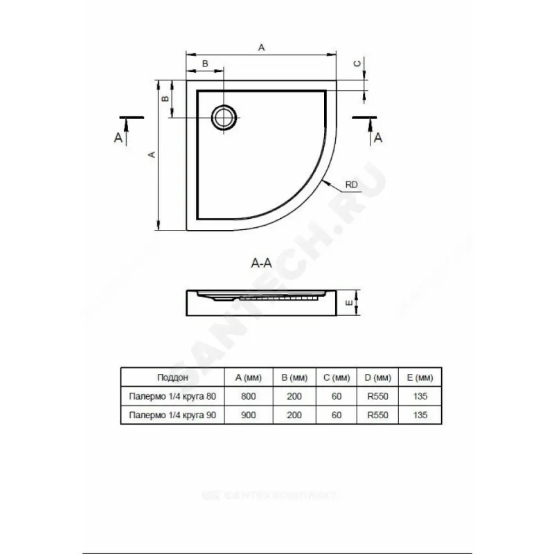 | Размер поддона, мм | 900х900х135 |