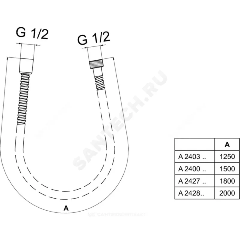 | Подключение шланга к лейке для душа | трубная цилиндрическая резьба G 1/2" |
