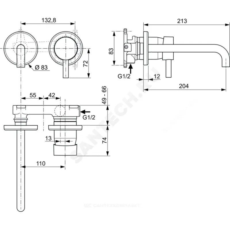 | Встраиваемая часть смесителя | заказывается отдельно |