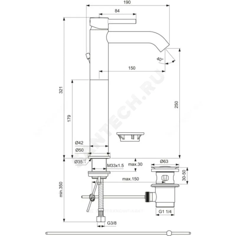| Длина излива | 150 мм |