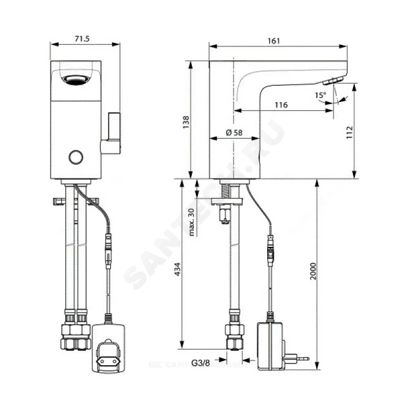 CERAPLUS Смеситель для раковины со смешиванием, работа от блока питаниясистема монтажа EASY-FIX (облегченный монтаж)литой изливбоковая металлическая рукоятка для регулировки температурыкрышка сенсора в комплекте (для использования во время чистки корпуса)длина излива 116 ммламинарный регулятор потока (защита от попадания бактерий) с ограничением потока 5 л/мин.электромагнитный клапан интегрирован в корпусполнофункциональный электронный датчик (регулируемые функции)блок питания с адаптером на (AC 220V), кабель 2 мгибкая подводка G3/8", шланги стандартной длины 400 мм. Изделие может использоваться только в системах высокого давления (мин. 0,5 атм)рекомендована предварительная установка фильтра 50 µm (для обеспечения надлежащей работы электромагнитного клапана)