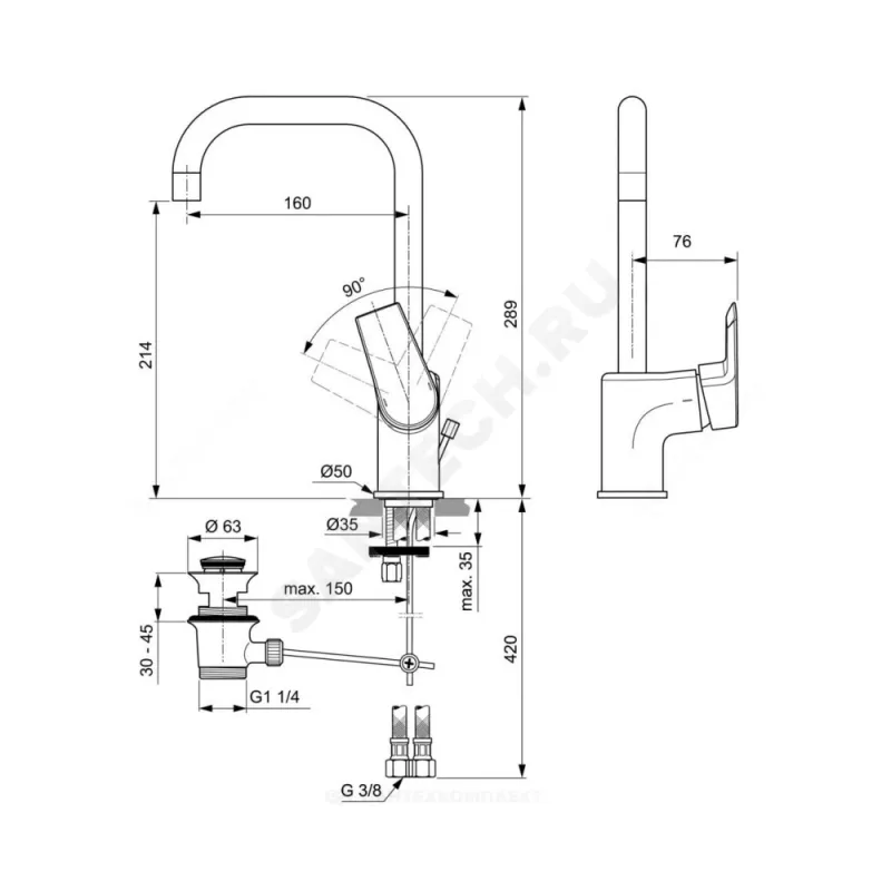 | Комплект поставки | смесителькрепежный комплектдонный клапан 1 1/4"подводка гибкая - параупаковкапаспорт |