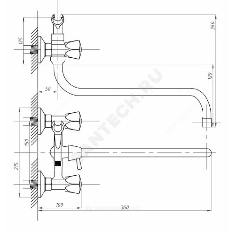 - Артикул:Смеситель для ванны с душем ПСМ-157-К/50 двуручный Профсан