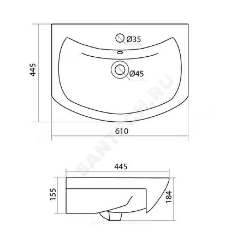 | Комплект поставки | умывальник, хромированное кольцо |