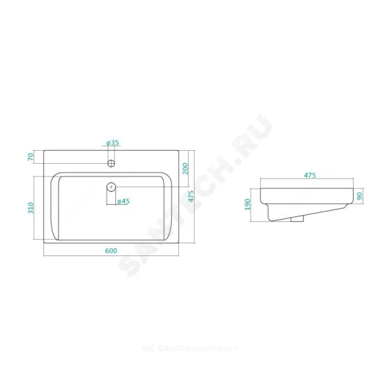 | Комплект поставки | умывальник, хромированное кольцо |