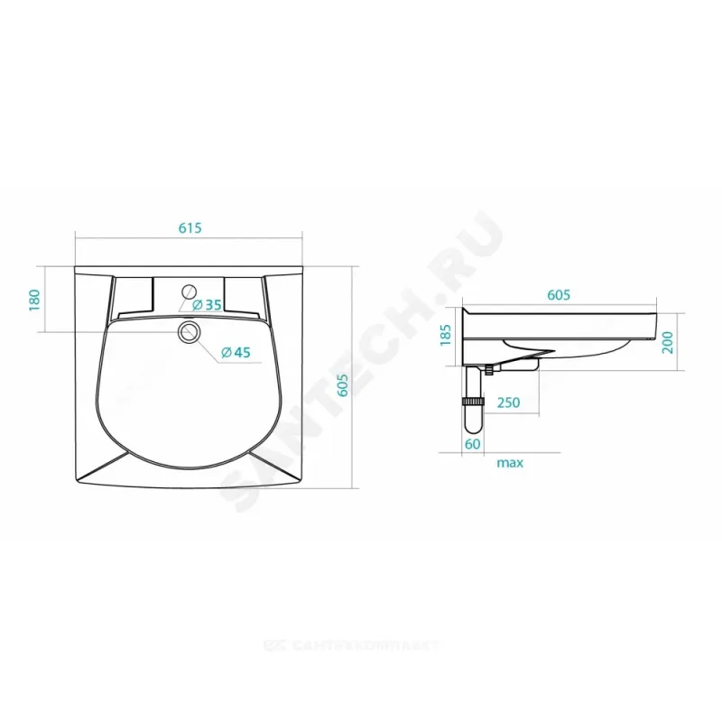 | Тип умывальника | подвесной |