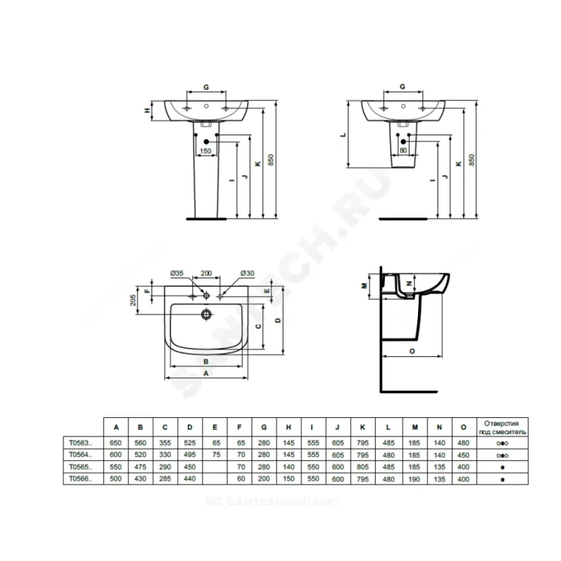 | Примечание | с 1-м отверстием под смеситель, с отверстием перелива, для монтажа с колонной T422901 или полуколонной T423001, без крепежа (рекомендуемый крепеж - K710767) |