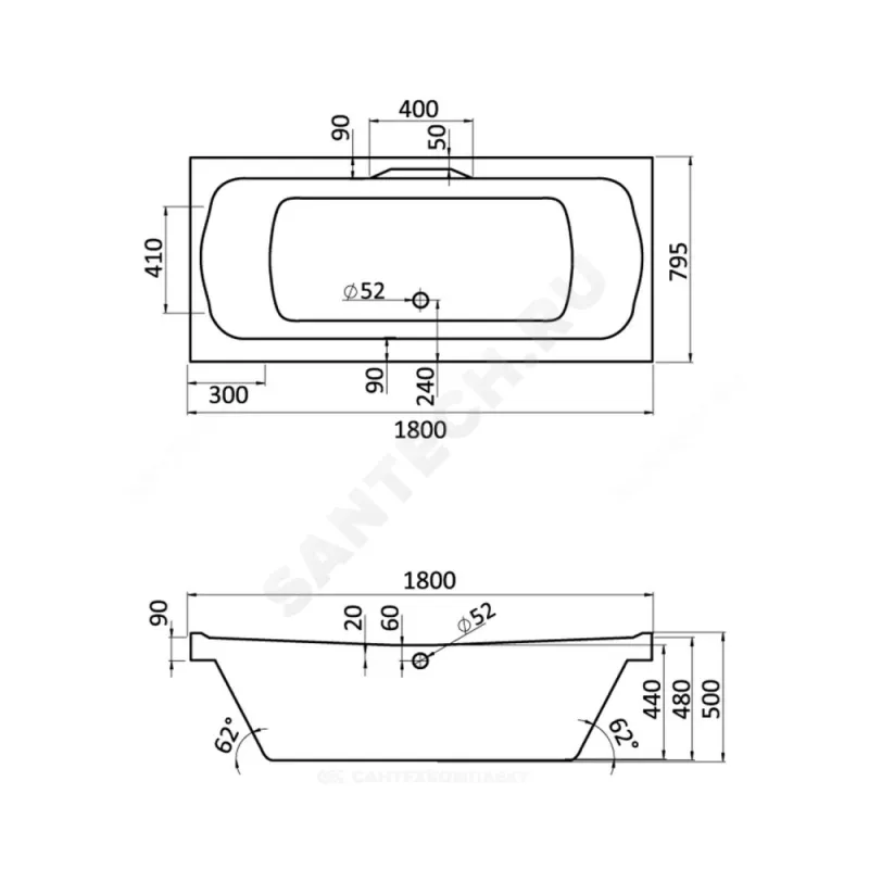 | Диаметр переливного отверстия, мм | 52 |