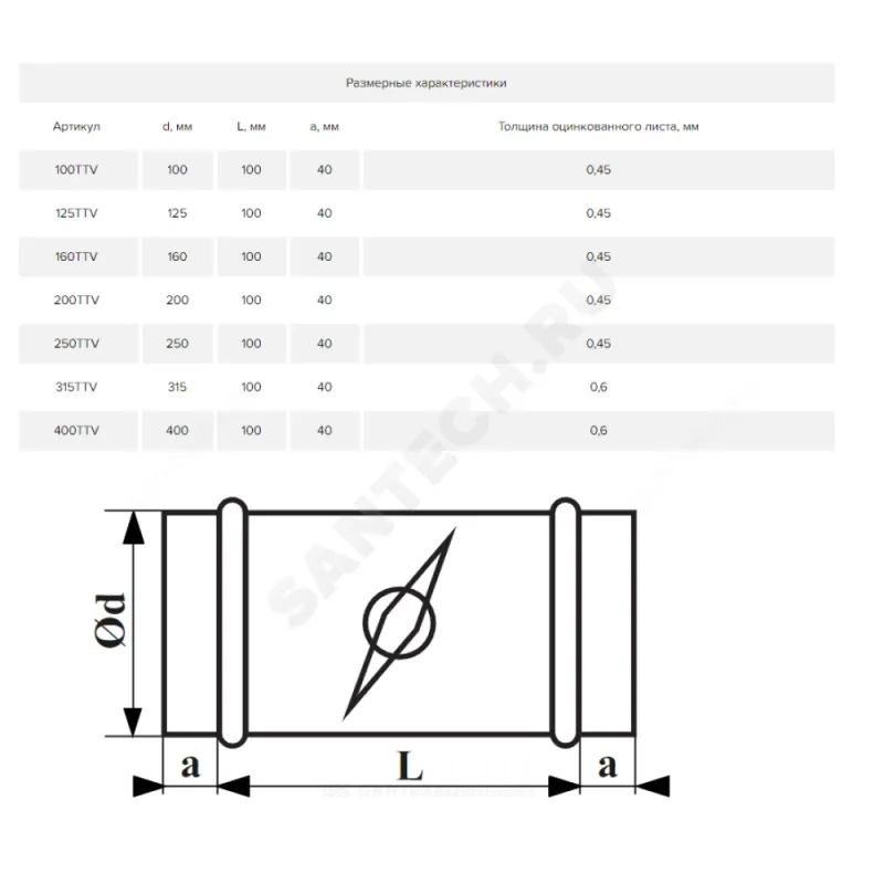 - Артикул:Дроссель-клапан круглый D160 0,45мм сталь оц Эра 160TTV
