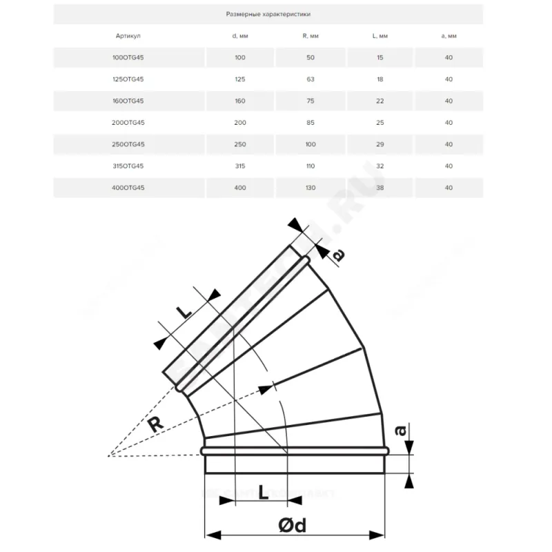 Отвод круглый 45гр D125 сталь оц Эра 125OTG45