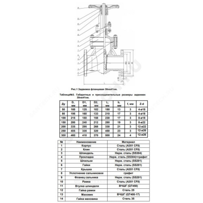 - Артикул:Задвижка клиновая нерж 30нж41нж Ду 200 Ру16 фл Китай