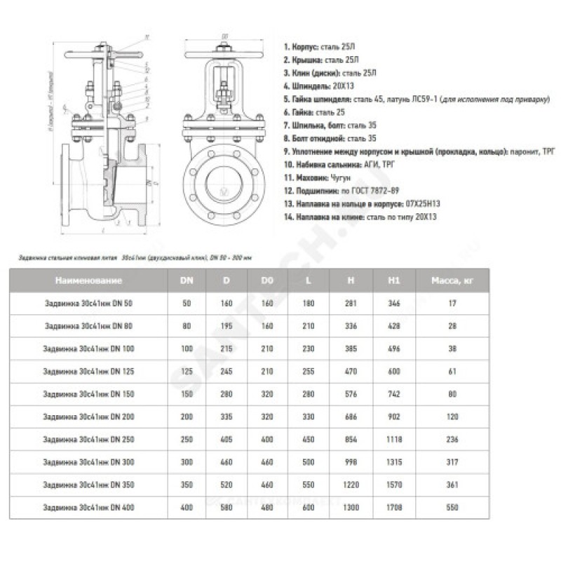 - Артикул:Задвижка клиновая сталь 30с41нж Ду 125 Ру16 фл МЗТА